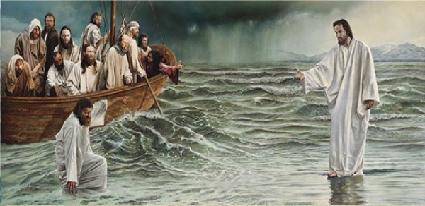 Marcu 6.45. Îndată, Isus a silit pe ucenicii Săi să intre în corabie, şi să treacă înaintea Lui de cealaltă parte, spre Betsaida. În timpul acesta, El avea să dea drumul norodului. 47. Cînd s-a înserat, corabia era în mijlocul mării, iar Isus era singur pe ţărm. 50. pentrucă toţi L-au văzut, şi s-au spăimîntat. Isus a vorbit îndată cu ei, şi le-a zis: „Îndrăzniţi, Eu sînt, nu vă temeţi!“
