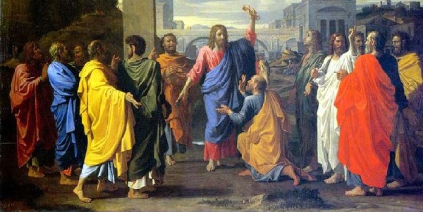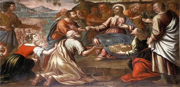 Marcu 6.30. Apostolii s-au adunat la Isus, şi I-au spus tot ce făcuseră şi tot ce învăţaseră pe oameni. 34. Cînd a ieşit din corabie, Isus a văzut mult norod; şi I s-a făcut milă de ei, pentrucă erau ca nişte oi cari n-aveau păstor; şi a început să-i înveţe multe lucruri.41. El a luat cele cinci pîni şi cei doi peşti. Şi-a ridicat ochii spre cer, şi a rostit binecuvîntarea. Apoi a frînt pînile şi le-a dat ucenicilor, ca ei să le împartă norodului. Asemenea şi cei doi peşti, i-a împărţit la toţi. 42. Au mîncat toţi şi s-au săturat; 44. Cei ce mîncaseră pînile, erau cinci mii de bărbaţi.