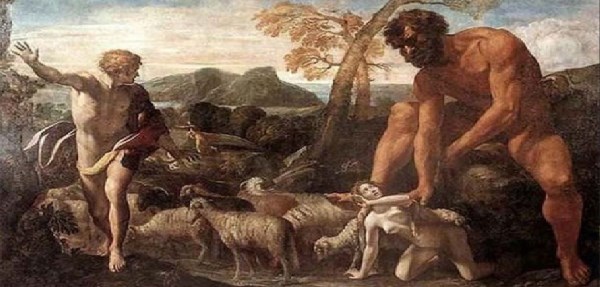 I. Mózes 4.1. Azután ismeré Ádám az ő feleségét Évát, a ki fogad vala méhében és szűli vala Kaint, és monda: Nyertem férfiat az Úrtól. 2. És ismét szűlé annak atyjafiát, Ábelt. És Ábel juhok pásztora lőn, Kain pedig földmívelő. 3. Lőn pedig idő multával, hogy Kain ajándékot vive az Úrnak a föld gyümölcséből. 4. És Ábel is vive az ő juhainak első fajzásából és azoknak kövérségéből. És tekinte az Úr Ábelre és az ő ajándékára. 5. Kainra pedig és az ő ajándékára nem tekinte,