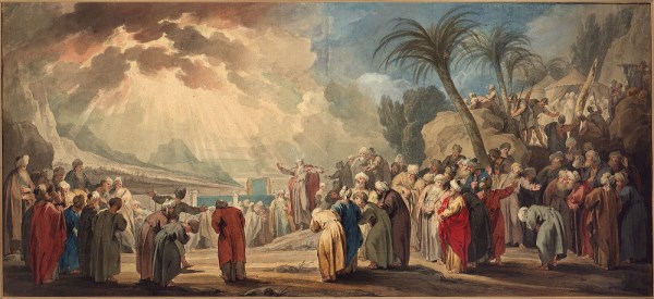 2 Mózes 24. 12. És szóla az Úr Mózesnek: Jőjj fel én hozzám a hegyre és maradj ott. És átadom néked a kőtáblákat, és a törvényt és a parancsolatot, a melyeket írtam, hogy azokra megtaníttassanak. 15. Akkor felméne Mózes a hegyre; és felhő borítá el a hegyet. 17. Az Úr dicsőségének jelensége pedig olyan vala az Izráel fiainak szeme előtt, mint emésztő tűz, a hegy tetején. 18. És beméne Mózes a felhő közepébe, és felméne a hegyre, és negyven nap és negyven éjjel vala Mózes a hegyen.
