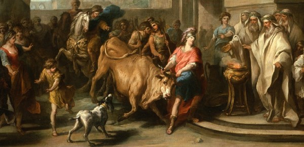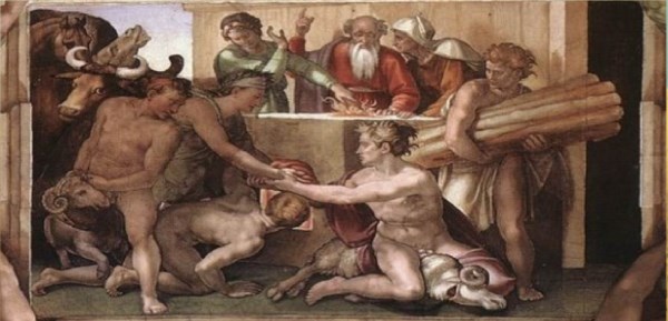 3 Mózes 1.1. Szólítá Mózest és beszéle vele az Úr a gyülekezet sátorából, mondván: 2. Szólj Izráel fiainak, és mondd meg nékik: Ha valaki közületek áldozni akar az Úrnak: barmokból, tulok- és juhfélékből áldozzatok. 3. Ha tulokféléből áldozik egészen égőáldozattal: hímmel és éppel áldozzék. 5. És ölje meg a tulkot az Úr előtt, az Áron fiai pedig, a papok, vigyék fel a vért, és hintsék a vért köröskörűl az oltárra, a mely a gyülekezet sátorának nyílásánál van. 13.Ez a tűzáldozat kedves illatú az Úrnak.