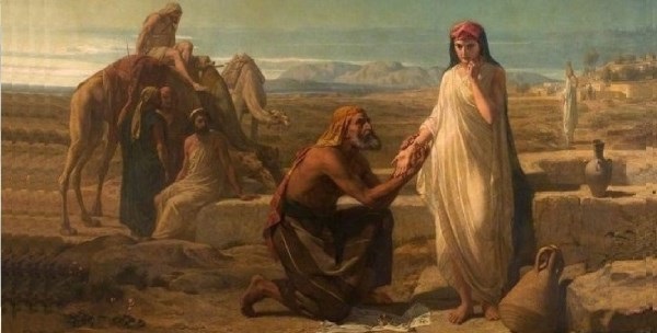 1 Mózes 24.63. És kiméne Izsák este felé elmélkedni a mezőre, és felemelé szemeit és látá, hogy ímé tevék jőnek. 64. Rebeka is felemelé szemeit s meglátá Izsákot, és leszálla a tevéről. 67. Izsák pedig bevivé Rebekát Sárának az ő anyjának sátorába. És elvevé Rebekát és lőn néki felesége és szereté őt. S megvigasztalódék Izsák az ő anyja halála után.