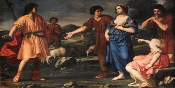 1 Mózes 28.1. Előhívatá azért Izsák Jákóbot, és megáldá őt, és megparancsolá néki és mondá: Ne végy feleséget a Kananeusok leányai közűl. 29.1. Jákób azután lábára kelvén, elméne a napkeletre lakók földére. 4. És monda nékik Jákób: Honnan valók vagytok atyámfiai? És mondának: Háránból valók vagyunk. 5. És monda nékik: Ismeritek-é Lábánt, a Nákhor fiát? s azok felelének: Ismerjük. 6. Azután monda nékik: Egészségben van-é? s azok mondának: Egészségben van, és az ő leánya Rákhel ímhol jő a juhokkal.