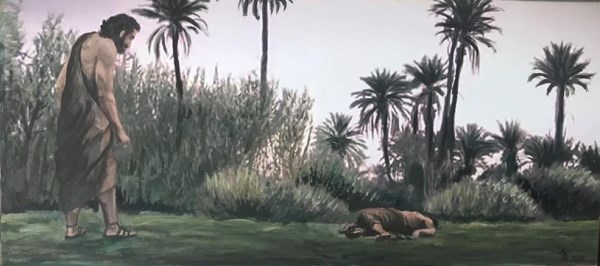 I. Moise 4. 8. Însă Cain a zis fratelui său Abel: „Haidem să ieşim la cîmp.“ Dar pe cînd erau la cîmp, Cain s-a ridicat împotriva fratelui său Abel, şi l-a omorît.