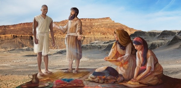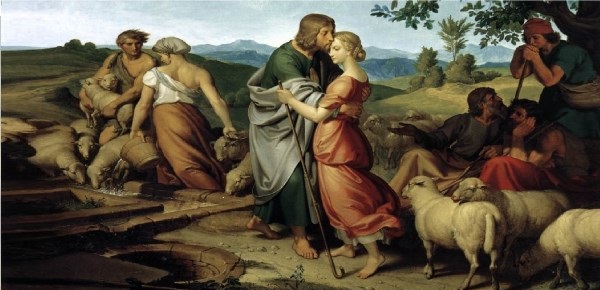 1 Mózes 28.1. Előhívatá azért Izsák Jákóbot, és megáldá őt, és megparancsolá néki és mondá: Ne végy feleséget a Kananeusok leányai közűl. 29.1. Jákób azután lábára kelvén, elméne a napkeletre lakók földére. 4. És monda nékik Jákób: Honnan valók vagytok atyámfiai? És mondának: Háránból valók vagyunk. 5. És monda nékik: Ismeritek-é Lábánt, a Nákhor fiát? s azok felelének: Ismerjük. 6. Azután monda nékik: Egészségben van-é? s azok mondának: Egészségben van, és az ő leánya Rákhel ímhol jő a juhokkal.