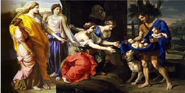 2 Moise 2.9. Fata lui Faraon i-a zis: „Ia copilul acesta, alăptează-mi-l, şi îţi voi plăti.“ Femeia a luat copilul, şi l-a alăptat. 10. Copilul a crescut, şi ea l-a adus fetei lui Faraon; şi el i-a fost fiu. I-a pus numele Moise (Scos); „căci“, a zis ea, „l-am scos din ape.“